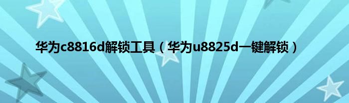 大家好,精选小编来为大家解答以上问题。华为c8816d解锁工具,华为u8825d一键解锁很多人还不知道,现在让我们一起来看看吧!