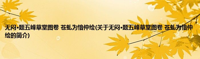 本文关于无闷·题五峰草堂图卷,苍虬为愔仲绘的简介就讲解完毕,希望对大家有所帮助。