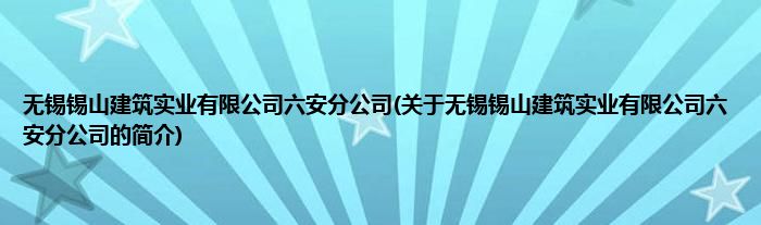 大家好,无锡锡山建筑实业有限公司六安分公司,关于无锡锡山建筑实业有限公司六安分公司的简介很多人还不知道,现在让我们一起来看看吧!
