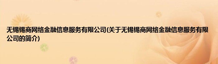 本文关于无锡锡商网络金融信息服务有限公司的简介就讲解完毕,希望对大家有所帮助。