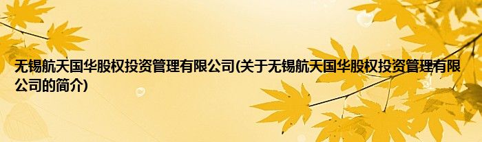 本文关于无锡航天国华股权投资管理有限公司的简介就讲解完毕,希望对大家有所帮助。