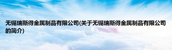 本文关于无锡瑞斯得金属制品有限公司的简介就讲解完毕,希望对大家有所帮助。