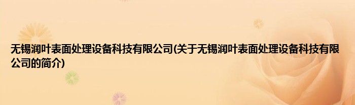 本文关于无锡润叶表面处理设备科技有限公司的简介就讲解完毕,希望对大家有所帮助。