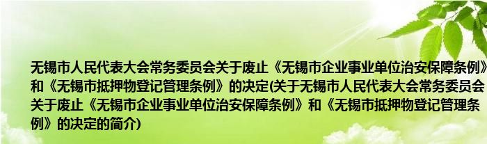 本文关于无锡市人民代表大会常务委员会关于废止《无锡市企业事业单位治安保障条例》和《无锡市抵押物登记管理条例》的决定的简介就讲解完毕,希望对大家有所帮助。