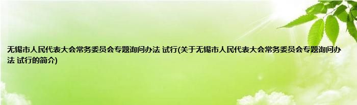 本文关于无锡市人民代表大会常务委员会专题询问办法 试行的简介就讲解完毕,希望对大家有所帮助。