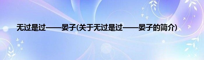 大家好,无过是过——晏子,关于无过是过——晏子的简介很多人还不知道,现在让我们一起来看看吧!