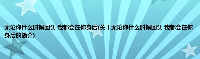 大家好,无论你什么时候回头,我都会在你身后,关于无论你什么时候回头,我都会在你身后的简介很多人还不知道,现在让我们一起来看看吧!