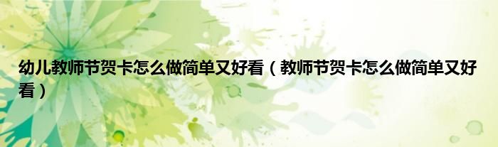 大家好,精选小编来为大家解答以上问题。幼儿教师节贺卡怎么做简单又好看,教师节贺卡怎么做简单又好看很多人还不知道,现在让我们一起来看看吧!