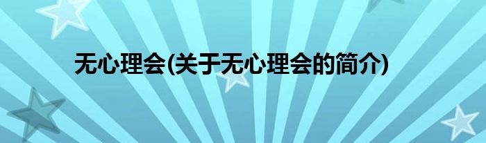 大家好,无心理会,关于无心理会的简介很多人还不知道,现在让我们一起来看看吧!