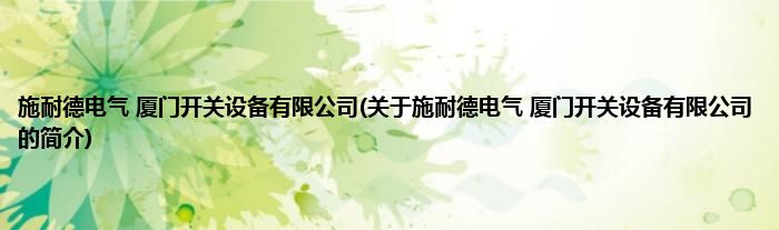 大家好,施耐德电气 厦门开关设备有限公司,关于施耐德电气 厦门开关设备有限公司的简介很多人还不知道,现在让我们一起来看看吧!