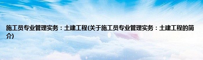 本文关于施工员专业管理实务:土建工程的简介就讲解完毕,希望对大家有所帮助。