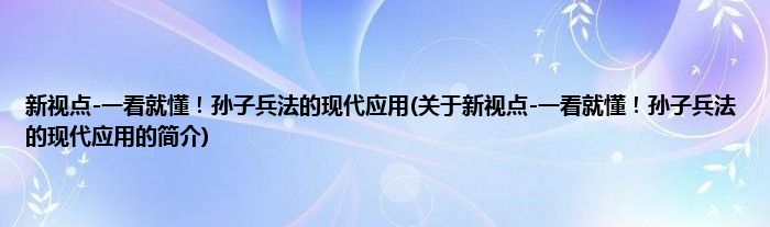 本文关于新视点-一看就懂!孙子兵法的现代应用的简介就讲解完毕,希望对大家有所帮助。