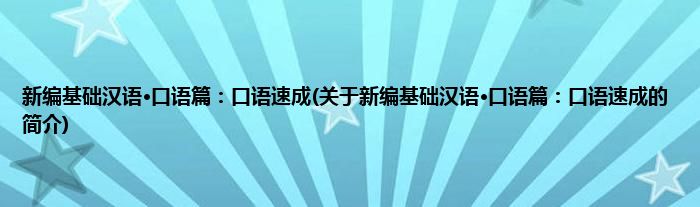 大家好,新编基础汉语·口语篇:口语速成,关于新编基础汉语·口语篇:口语速成的简介很多人还不知道,现在让我们一起来看看吧!