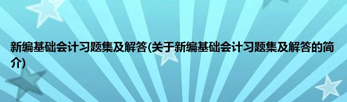 本文关于新编基础会计习题集及解答的简介就讲解完毕,希望对大家有所帮助。