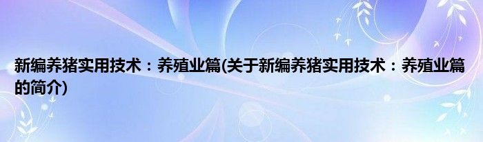 本文关于新编养猪实用技术:养殖业篇的简介就讲解完毕,希望对大家有所帮助。