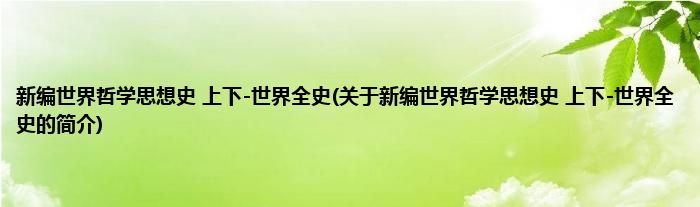 本文关于新编世界哲学思想史 上下-世界全史的简介就讲解完毕,希望对大家有所帮助。