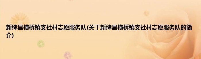 新绛县横桥镇支社村志愿服务队(关于新绛县横桥镇支社村志愿服务队的简介)