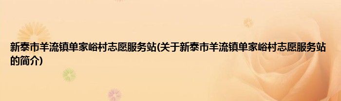 大家好,新泰市羊流镇单家峪村志愿服务站,关于新泰市羊流镇单家峪村志愿服务站的简介很多人还不知道,现在让我们一起来看看吧!