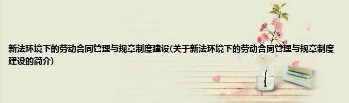 大家好,新法环境下的劳动合同管理与规章制度建设,关于新法环境下的劳动合同管理与规章制度建设的简介很多人还不知道,现在让我们一起来看看吧!