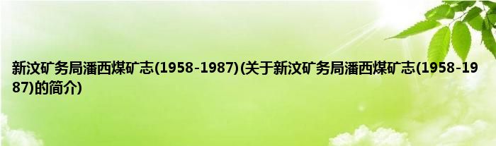 本文关于新汶矿务局潘西煤矿志(1958-1987)的简介就讲解完毕,希望对大家有所帮助。