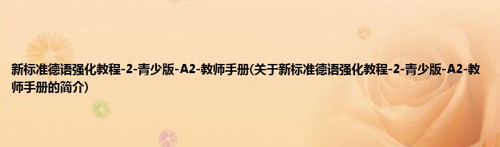 本文关于新标准德语强化教程-2-青少版-A2-教师手册的简介就讲解完毕,希望对大家有所帮助。