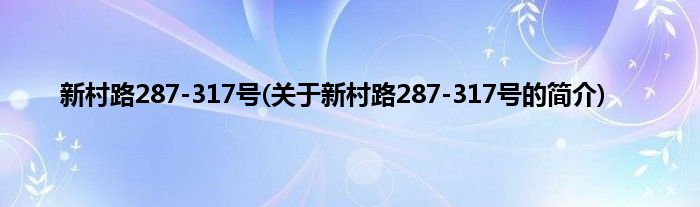 本文关于新村路287-317号的简介就讲解完毕,希望对大家有所帮助。