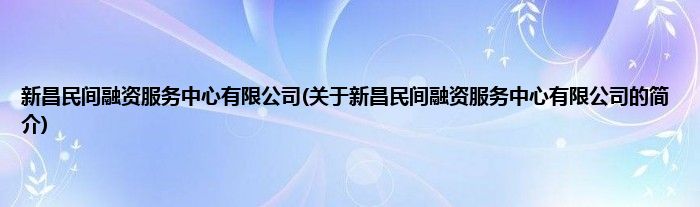 本文关于新昌民间融资服务中心有限公司的简介就讲解完毕,希望对大家有所帮助。