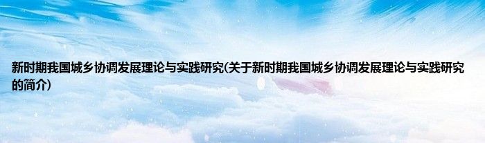 大家好,新时期我国城乡协调发展理论与实践研究,关于新时期我国城乡协调发展理论与实践研究的简介很多人还不知道,现在让我们一起来看看吧!