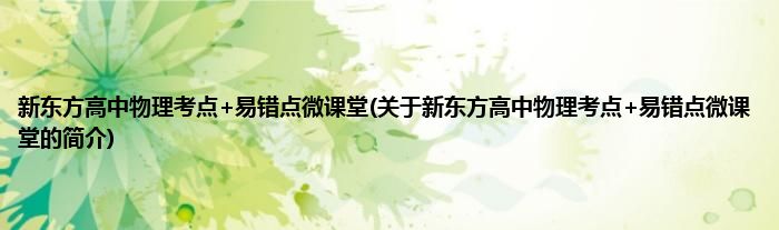 本文关于新东方高中物理考点+易错点微课堂的简介就讲解完毕,希望对大家有所帮助。