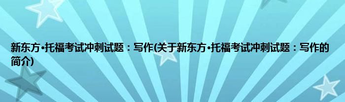 大家好,新东方·托福考试冲刺试题:写作,关于新东方·托福考试冲刺试题:写作的简介很多人还不知道,现在让我们一起来看看吧!