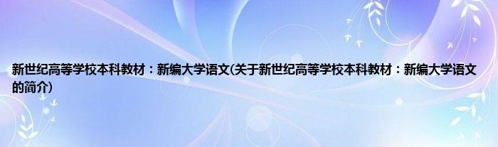 大家好,新世纪高等学校本科教材:新编大学语文,关于新世纪高等学校本科教材:新编大学语文的简介很多人还不知道,现在让我们一起来看看吧!