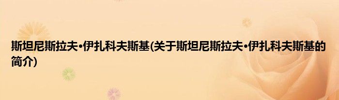 大家好,斯坦尼斯拉夫·伊扎科夫斯基,关于斯坦尼斯拉夫·伊扎科夫斯基的简介很多人还不知道,现在让我们一起来看看吧!