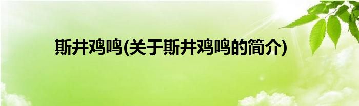 大家好,斯井鸡鸣,关于斯井鸡鸣的简介很多人还不知道,现在让我们一起来看看吧!