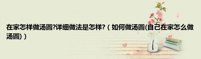 大家好,小科来为大家解答以上问题。在家怎样做汤圆?详细做法是怎样?,如何做汤圆(自己在家怎么做汤圆)很多人还不知道,现在让我们一起来看看吧!