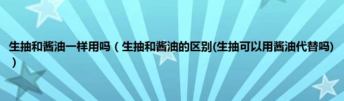 大家好,小科来为大家解答以上问题。生抽和酱油一样用吗,生抽和酱油的区别(生抽可以用酱油代替吗)很多人还不知道,现在让我们一起来看看吧!