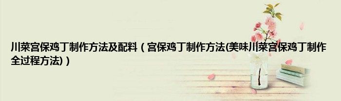 大家好,小科来为大家解答以上问题。川菜宫保鸡丁制作方法及配料,宫保鸡丁制作方法(美味川菜宫保鸡丁制作全过程方法)很多人还不知道,现在让我们一起来看看吧!