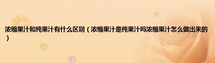 大家好,小科来为大家解答以上问题。浓缩果汁和纯果汁有什么区别,浓缩果汁是纯果汁吗浓缩果汁怎么做出来的很多人还不知道,现在让我们一起来看看吧!