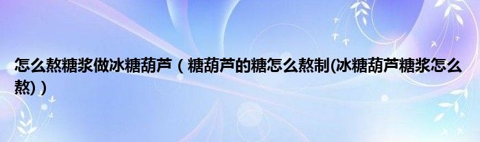 大家好,小科来为大家解答以上问题。怎么熬糖浆做冰糖葫芦,糖葫芦的糖怎么熬制(冰糖葫芦糖浆怎么熬)很多人还不知道,现在让我们一起来看看吧!