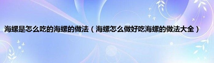 大家好,小科来为大家解答以上问题。海螺是怎么吃的海螺的做法,海螺怎么做好吃海螺的做法大全很多人还不知道,现在让我们一起来看看吧!