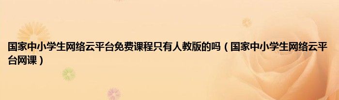 大家好,精选小编来为大家解答以上问题。国家中小学生网络云平台免费课程只有人教版的吗,国家中小学生网络云平台网课很多人还不知道,现在让我们一起来看看吧!