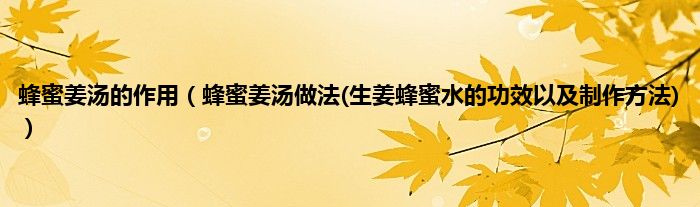 大家好,小科来为大家解答以上问题。蜂蜜姜汤的作用,蜂蜜姜汤做法(生姜蜂蜜水的功效以及制作方法)很多人还不知道,现在让我们一起来看看吧!