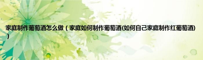 大家好,小科来为大家解答以上问题。家庭制作葡萄酒怎么做,家庭如何制作葡萄酒(如何自己家庭制作红葡萄酒)很多人还不知道,现在让我们一起来看看吧!