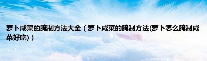 大家好,小科来为大家解答以上问题。萝卜咸菜的腌制方法大全,萝卜咸菜的腌制方法(萝卜怎么腌制咸菜好吃)很多人还不知道,现在让我们一起来看看吧!