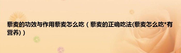 大家好,小科来为大家解答以上问题。藜麦的功效与作用藜麦怎么吃,藜麦的正确吃法(藜麦怎么吃*有营养)很多人还不知道,现在让我们一起来看看吧!