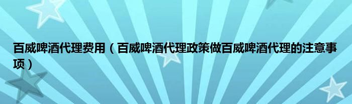 大家好,小科来为大家解答以上问题。百威啤酒代理费用,百威啤酒代理政策做百威啤酒代理的注意事项很多人还不知道,现在让我们一起来看看吧!