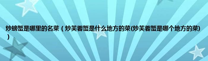 大家好,小科来为大家解答以上问题。炒螃蟹是哪里的名菜,炒芙蓉蟹是什么地方的菜(炒芙蓉蟹是哪个地方的菜)很多人还不知道,现在让我们一起来看看吧!