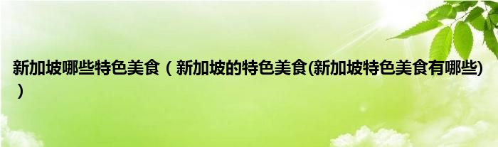 大家好,小科来为大家解答以上问题。新加坡哪些特色美食,新加坡的特色美食(新加坡特色美食有哪些)很多人还不知道,现在让我们一起来看看吧!