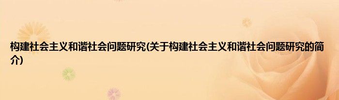 构建社会主义和谐社会问题研究(关于构建社会主义和谐社会问题研究的简介)
