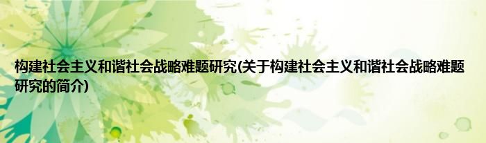 本文关于构建社会主义和谐社会战略难题研究的简介就讲解完毕,希望对大家有所帮助。