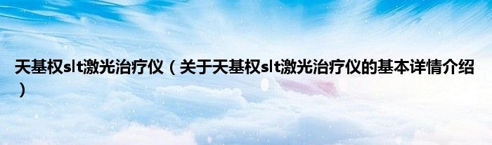 本文关于天基权slt激光治疗仪的基本详情介绍就讲解完毕,希望对大家有所帮助。
